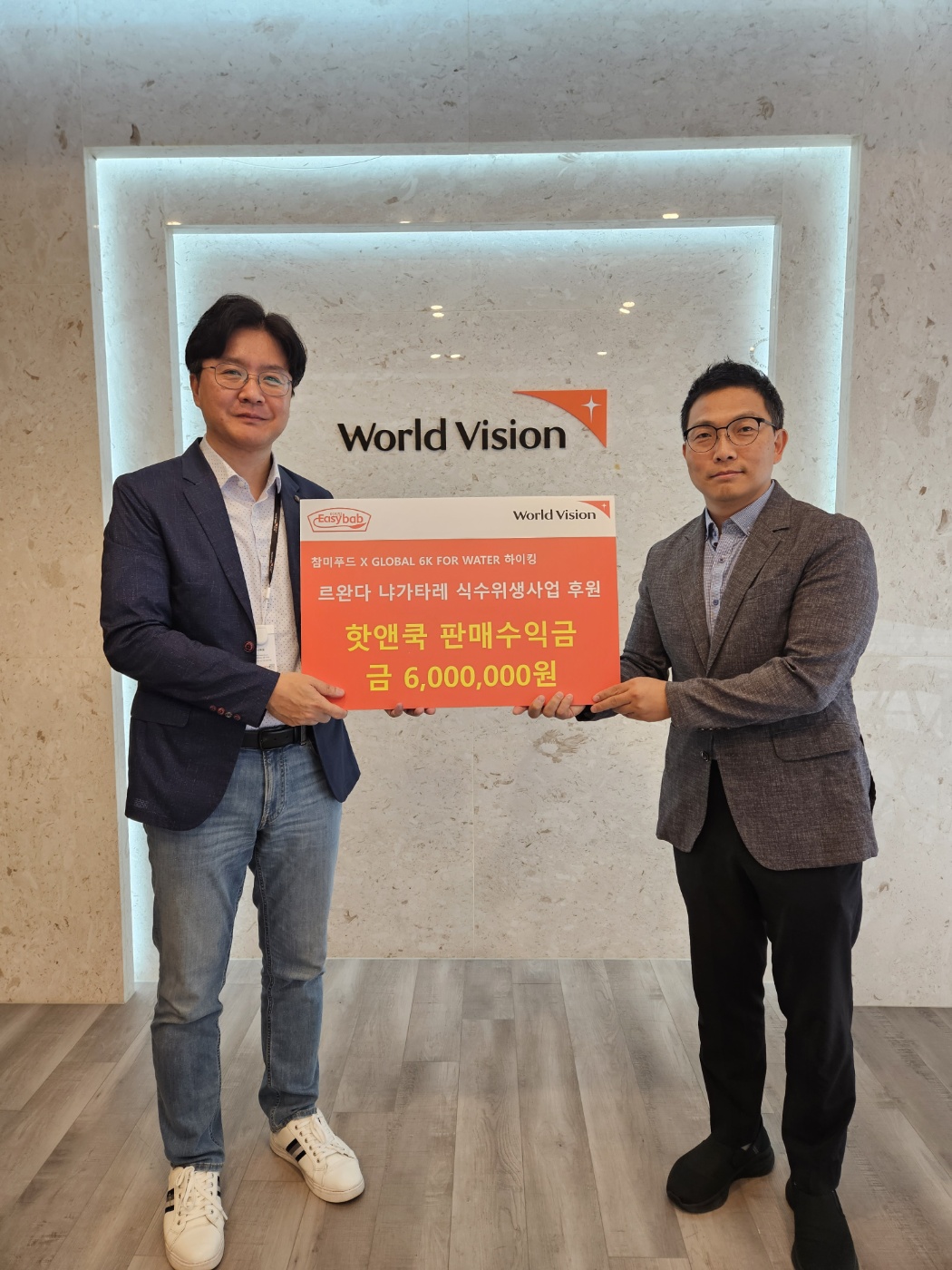 공식협찬사인 저희 (주)참미푸드는 글로벌 6K 패키지 핫앤쿡 판매 수익금 중 일부 금액 600만원을 아프리카 르완다 냐가타레 식수위생사업에 후원하였습니다.