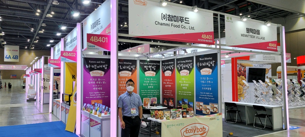2021 서울국제식품산업대전에 참가중인 저희 참미푸드의 부스입니다.