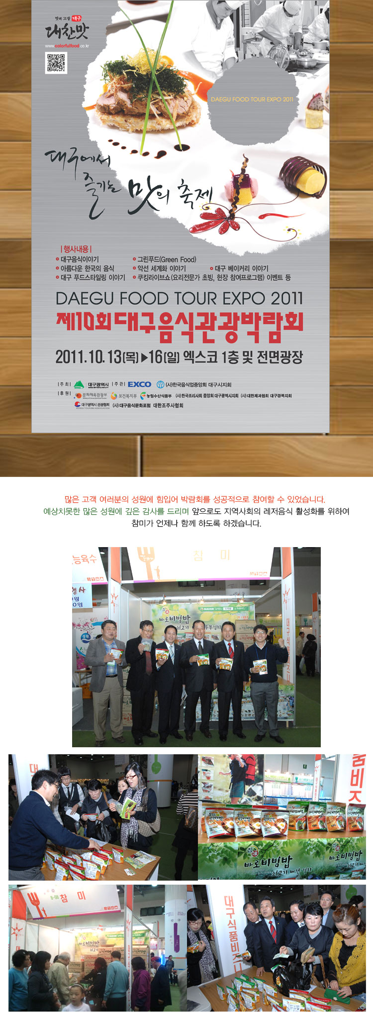2005년 4월에 설립하여서 “바로비빔밥, 바로잡채밥, 미니바로비빔밥”등 물만부으면 간편하게 취식이 가능한 건조밥시리즈를 생산, 판매하고 있습니다. 식품업계에서 중소기업이라는 단점을 극복하고자 삼성화재 1억원 생산물배상책임보험에 가입하였으면 해충방제전문업체인 세스코에 가입하여 공장내,외부의 환경을 관리하고 있습니다. 또한 2009년 서울국제식품박람회에 참여하여 제품소개와 바이어 발굴에 노력하였습니다. 2011년 ISO9001 국제품질인증획득, 대구국제식품박람회참가를 하였습니다. 또한 2013년 법인설립과 신축공장 이전으로 보다 위생적인 환경에서 생산하고 있습니다.