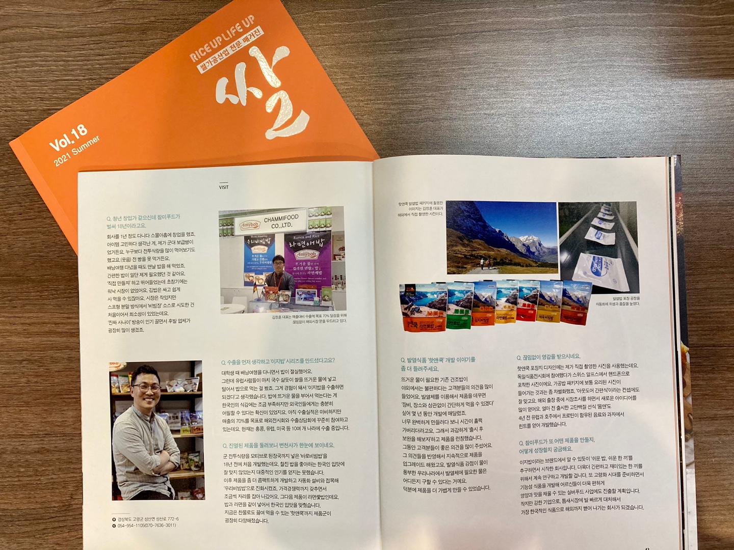 한국쌀가공식품협회 간행물 [RICE UP LIFE UP] 2021년 여름호에 저희 (주)참미푸드가 소개되었습니다.